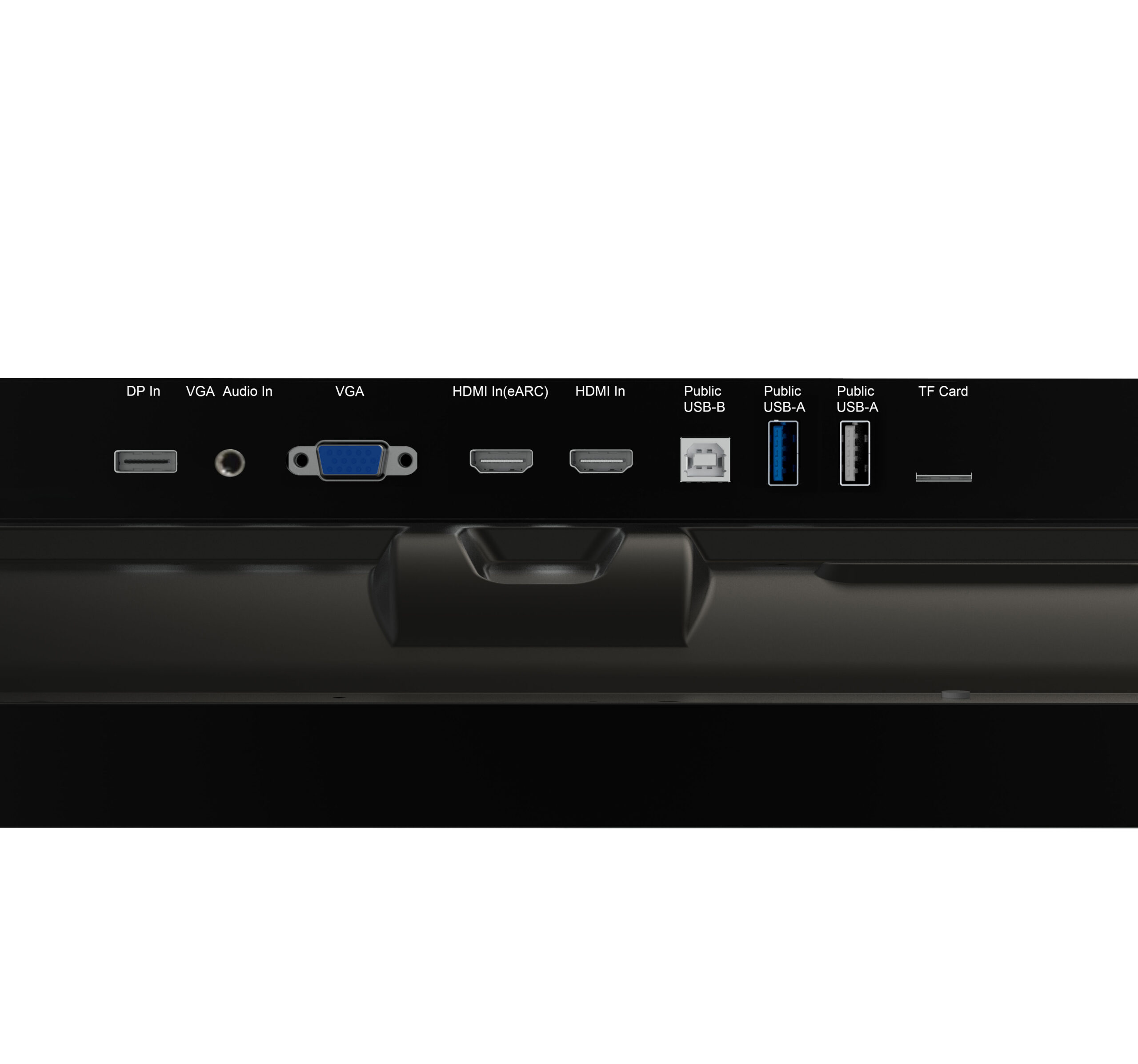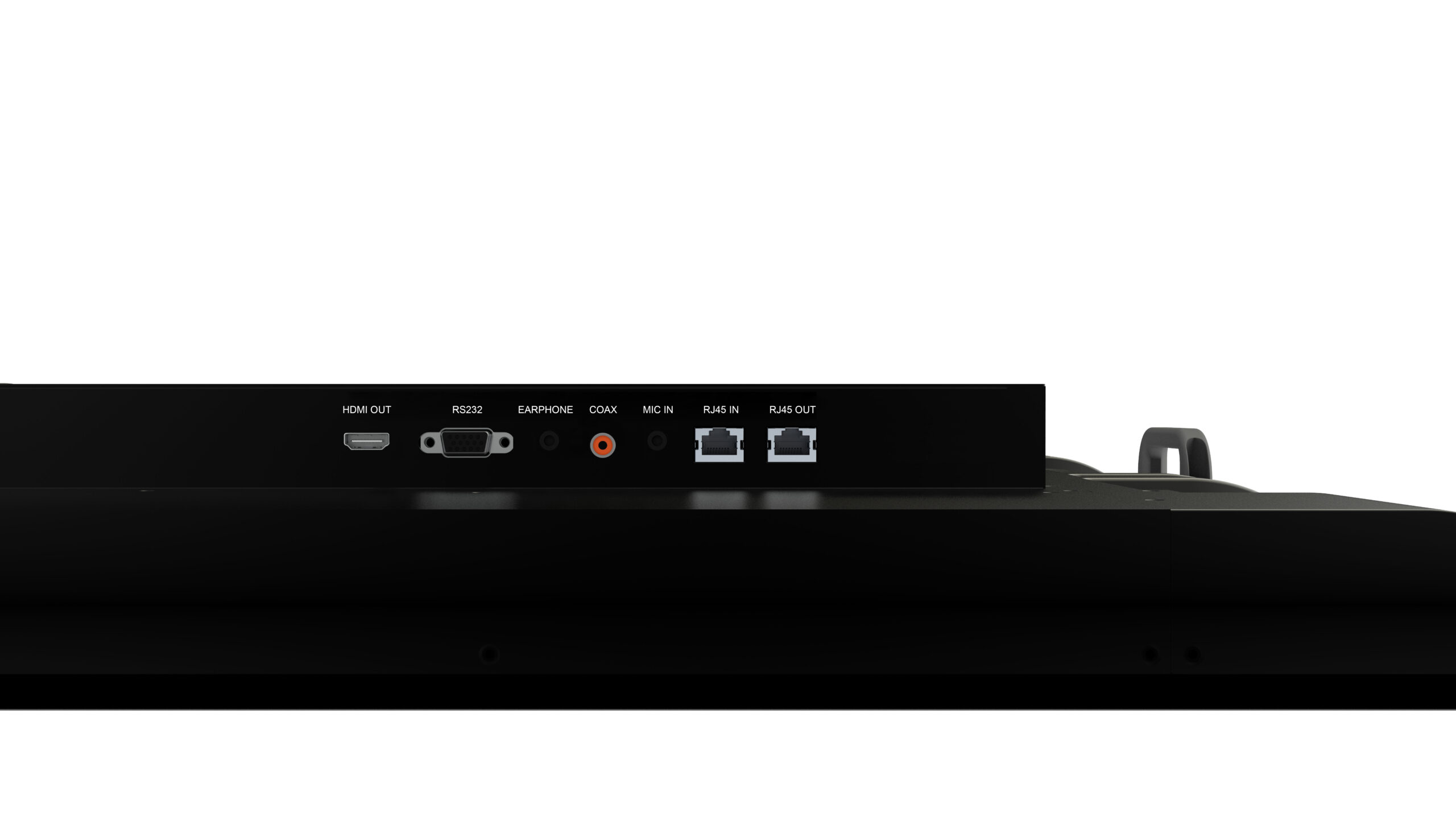 | Connectique Arrière | RJ45: 1 x R J45 IN | 1 x RJ45 OUT MIC: 1 x MIC IN COAX: 1 x COAX EARPHONE: 1 x EARPHONE RS232 : 1 x RS232 HDMI : 1 x HDMI IN | 1 x HDMI IN (EARC) | 1 x HDMI OUT DP IN : 1 x DP IN (1.2) VGA: 1 x VGA AUDIO IN | 1 x VGA USB: 1 x USB-B | 1 x USB A (2.0) | 1 x USB A (3.0) TF Card: 1 x TF Card |
